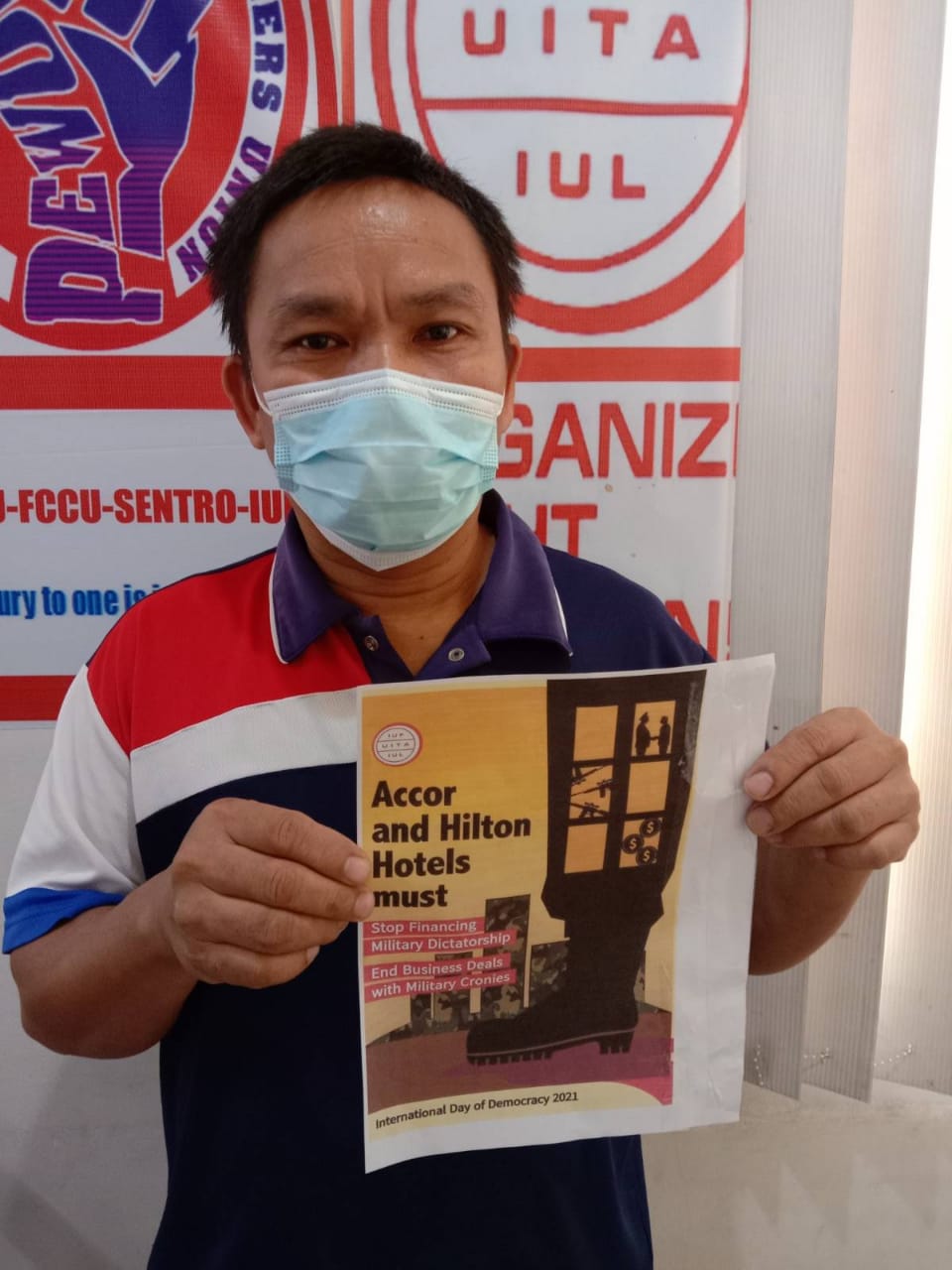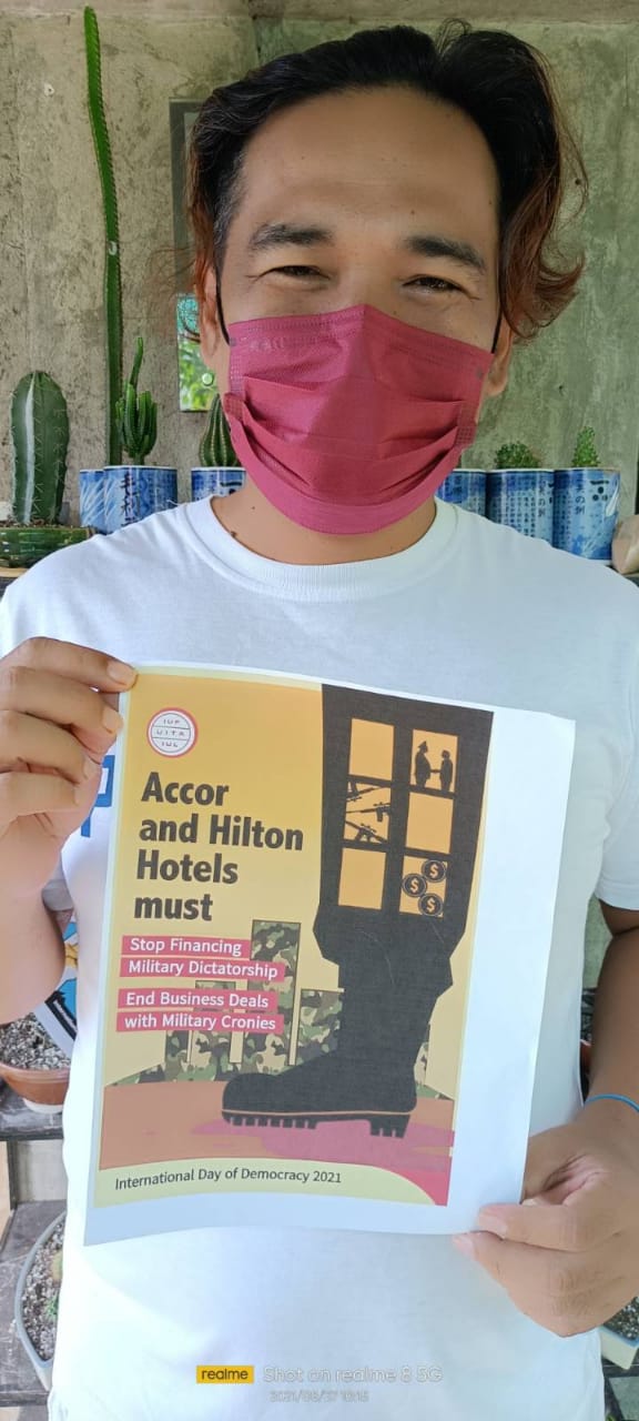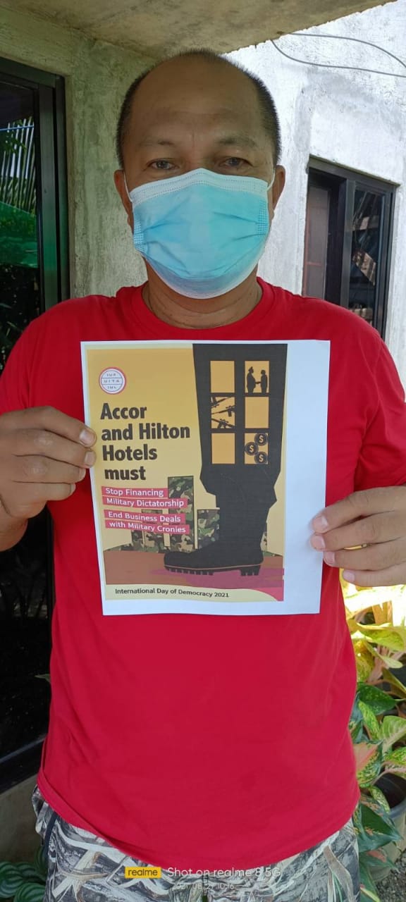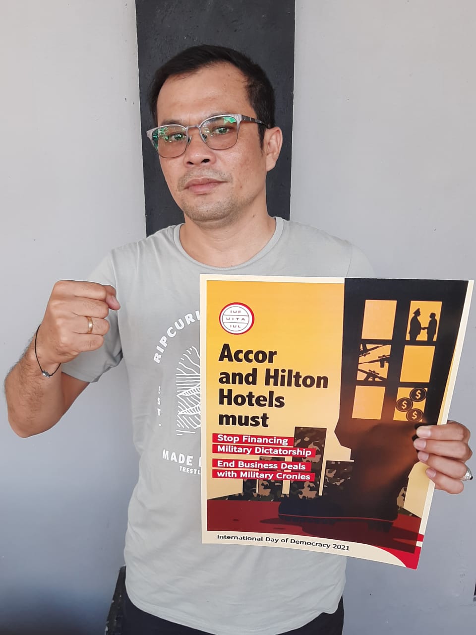 On the International Day of Democracy (September 15) IUF members across the Asia-Pacific region are telling Accor and Hilton to STOP doing business with the military and military cronies in Myanmar!