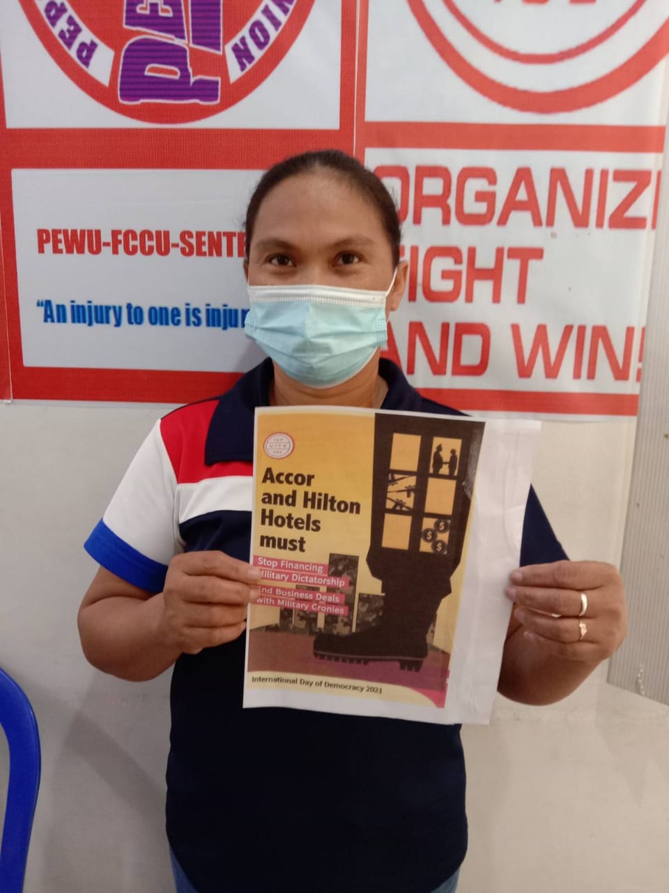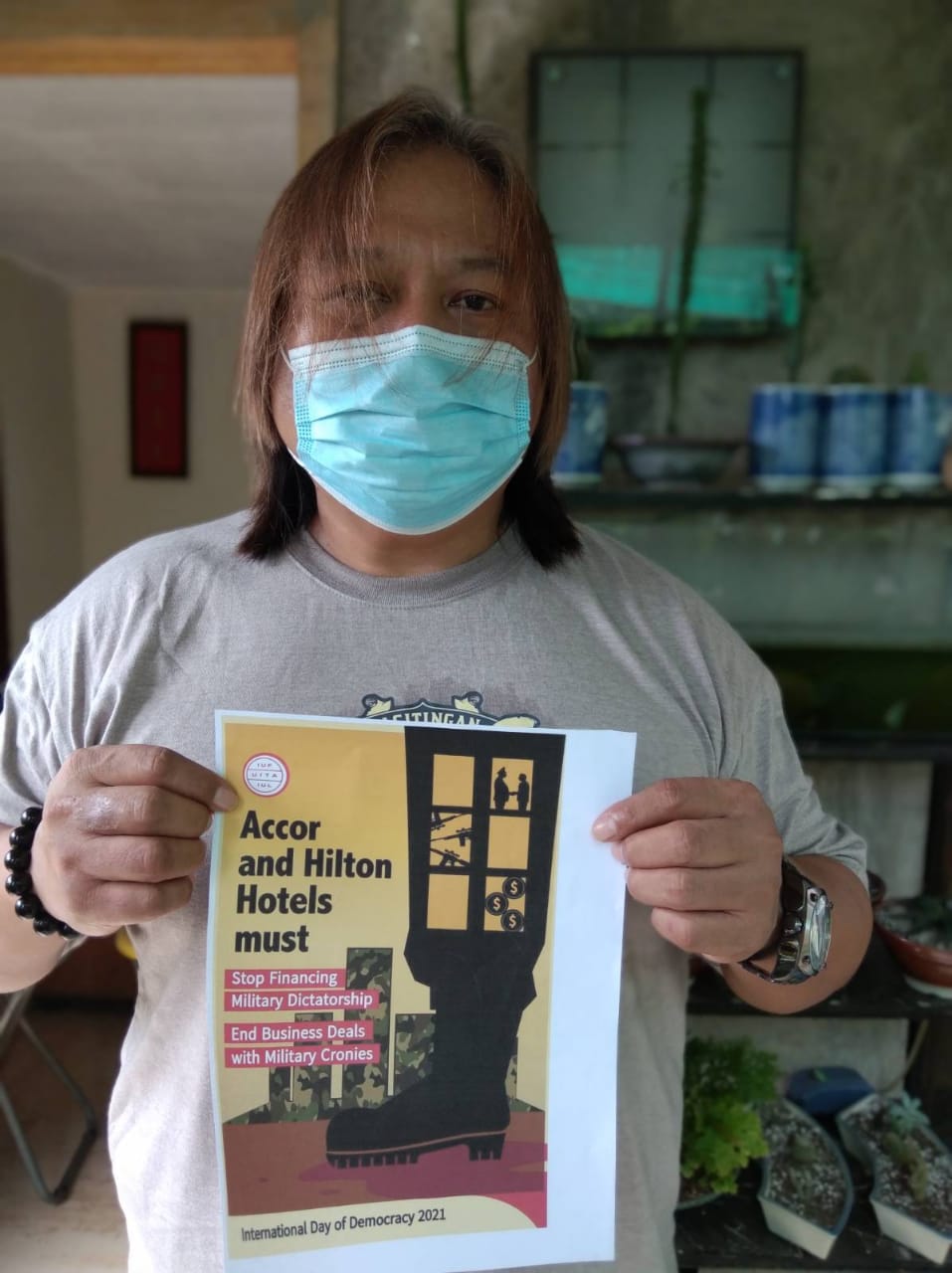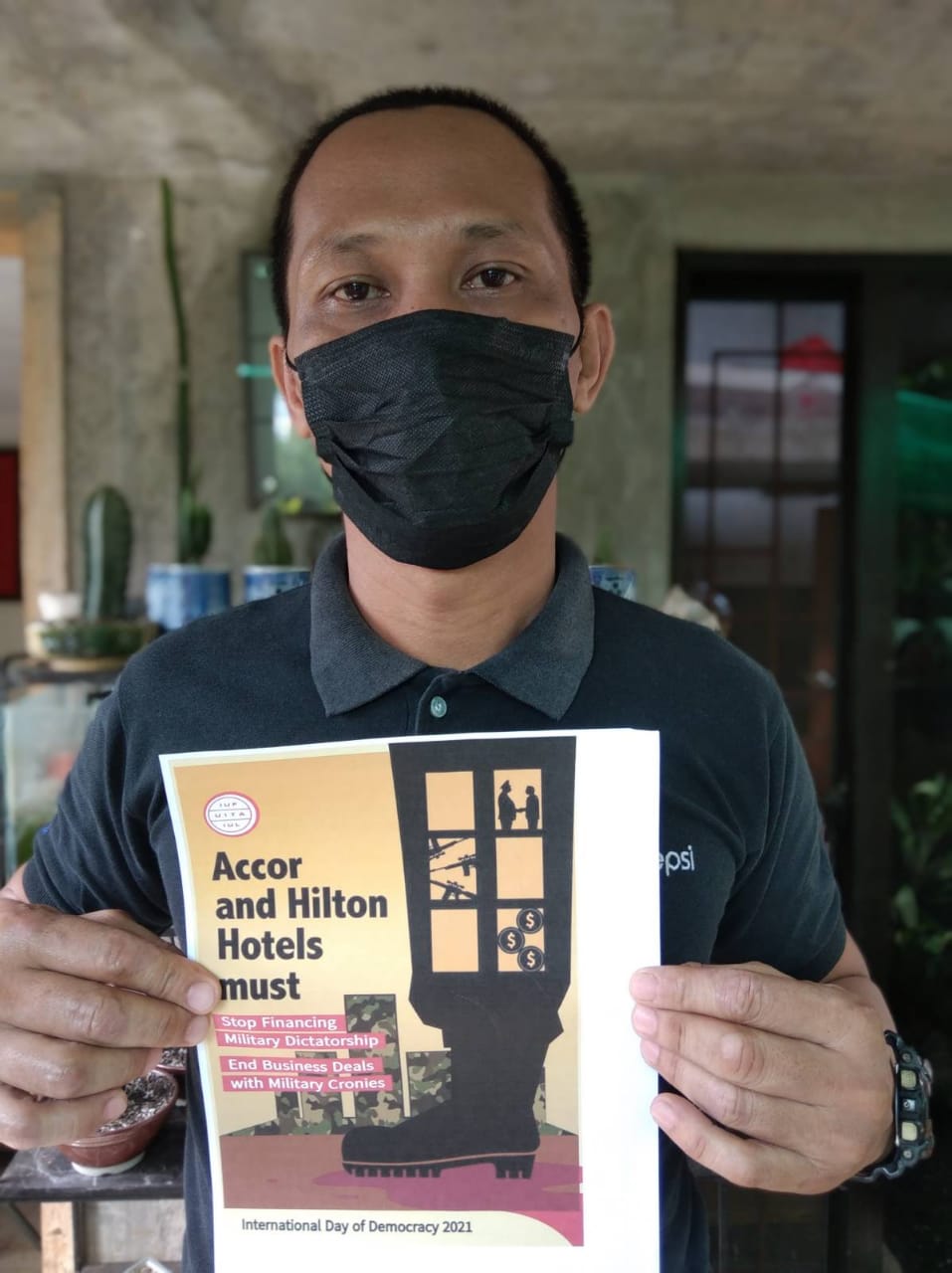 On the International Day of Democracy (September 15) IUF members across the Asia-Pacific region are telling Accor and Hilton to STOP doing business with the military and military cronies in Myanmar!